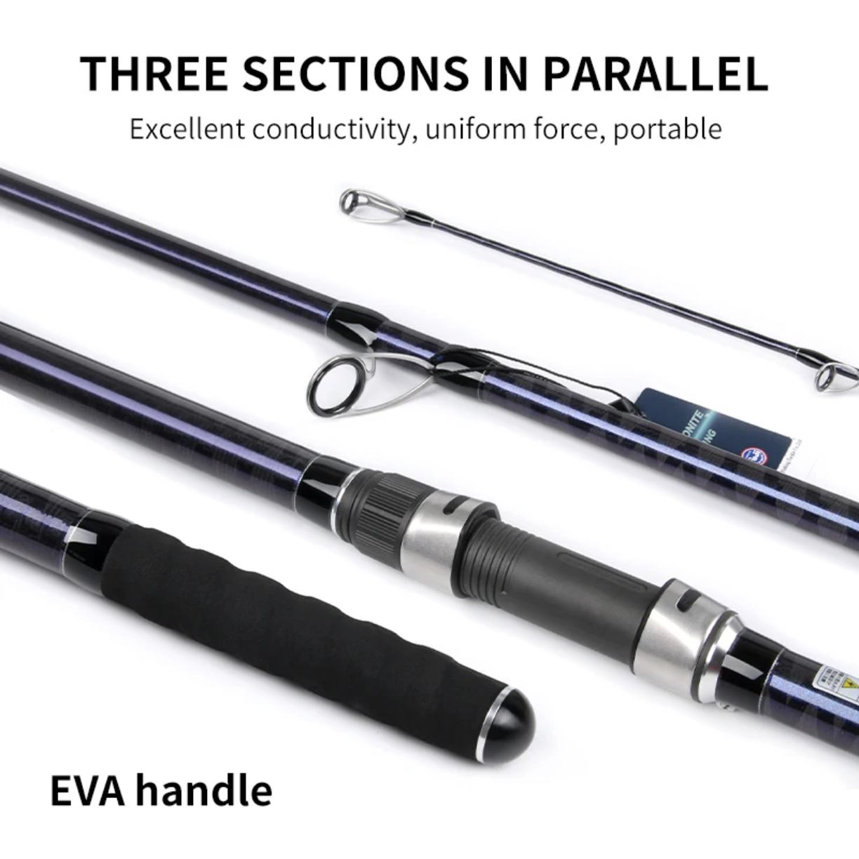 La canne dispose aussi d’une poignée EVA antidérapante, confortable et pratique pour les longues sessions de pêche.