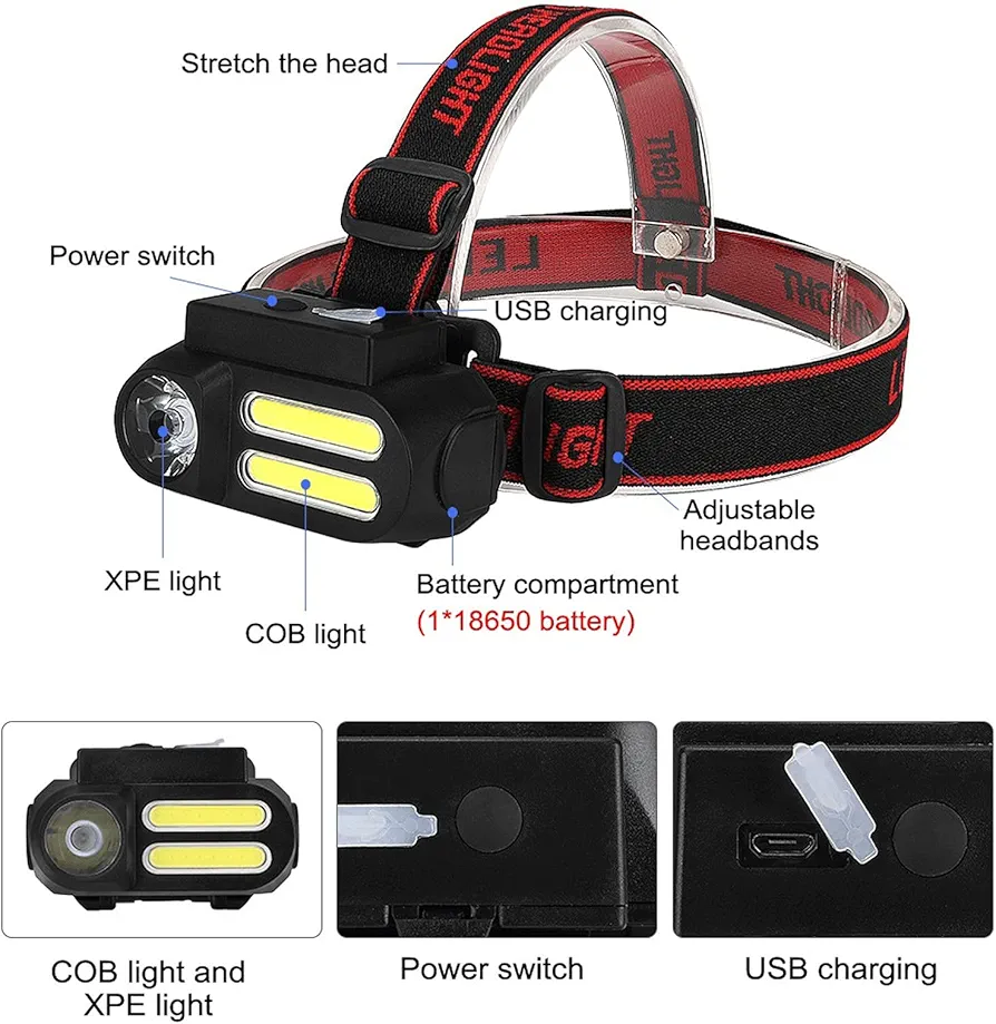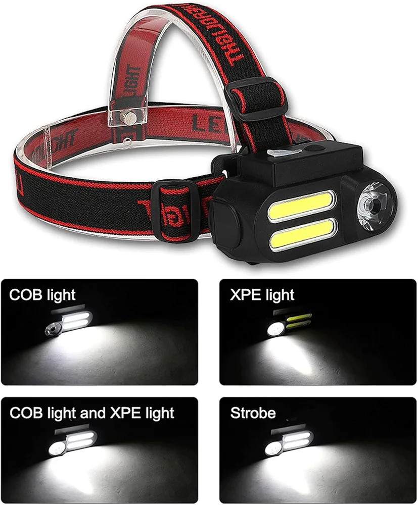Lampe Frontale NF-611 – Double Source de Lumière LED + COB, Rechargeable USB